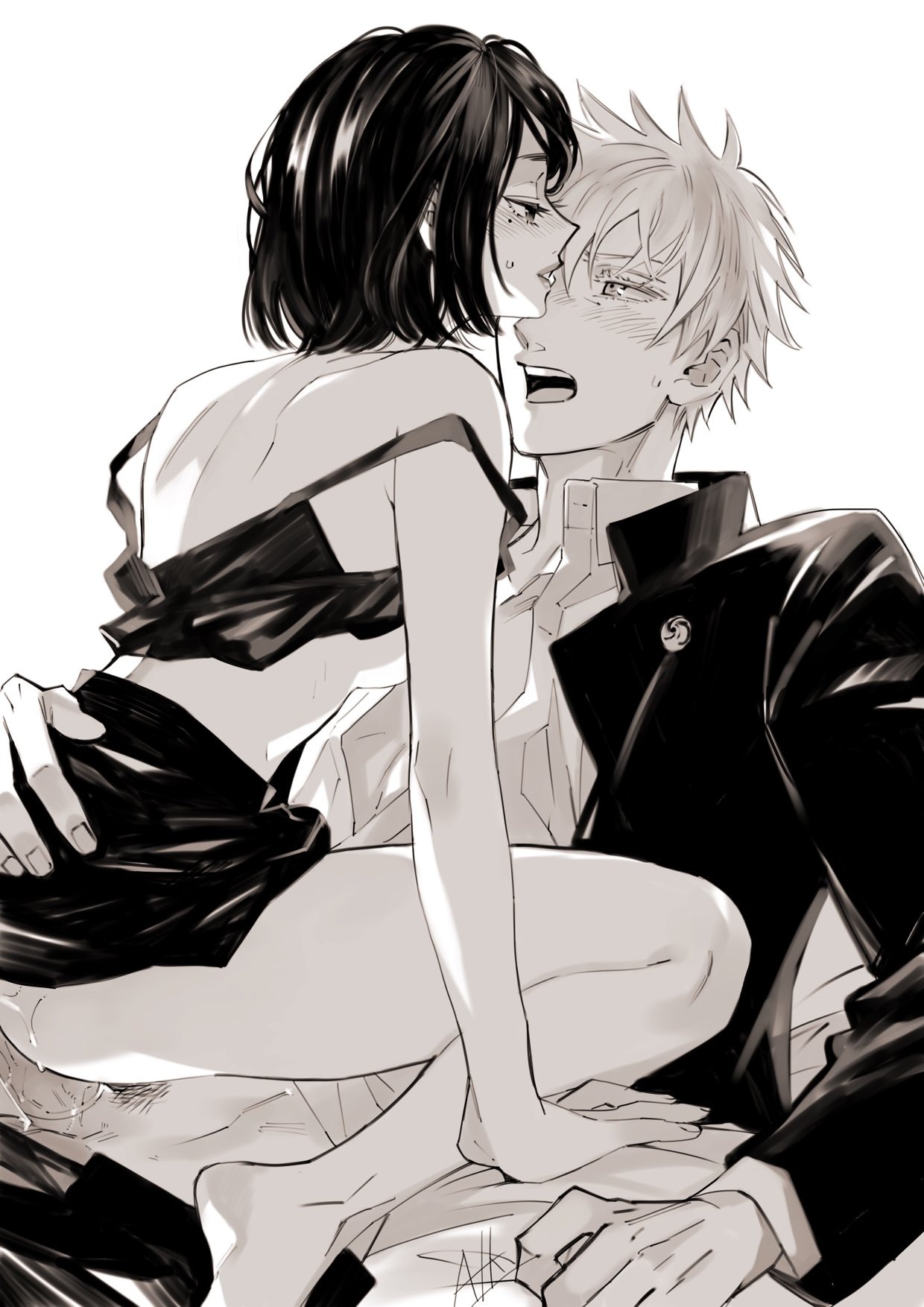 Brown Hair, censored, Jujutsu Kaisen, lick lips, Shoko Ieiri, short hair, Y...